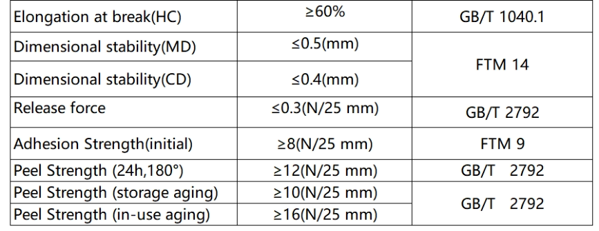 Testing Method Description:•HC Protective Film Elongation at Break: Refers to the elongation value recorded when the HC coating fractures during tensile testing of the finished product, conducted in accordance with GB/T1040.1 Plastics—Determination of tensile properties—Part 1: General principles.•Aged Peel Strength (Storage Condition): Indicates the 180° peel strength measured per GB/T2792 after the sample undergoes 65°C/72h aging treatment.•Aged Peel Strength (Application Condition): Indicates the 180° peel strength tested after the adhered sample undergoes 65°C/72h aging treatment and subsequent cooling to ambient temperature.